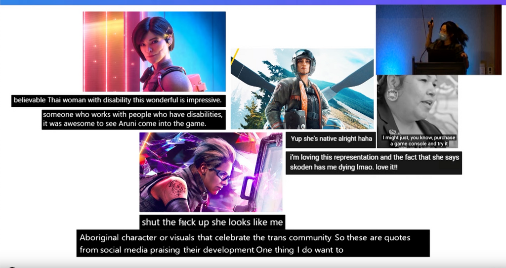 Interesting talk by Tina Chan on Authencity Workshops (https://www.youtube.com/watch?v=aWK3tOD-_co): authenticity is key when you want to develop marginlaized characters, this means, involve people from those communities through the whole research process and design of those characters
