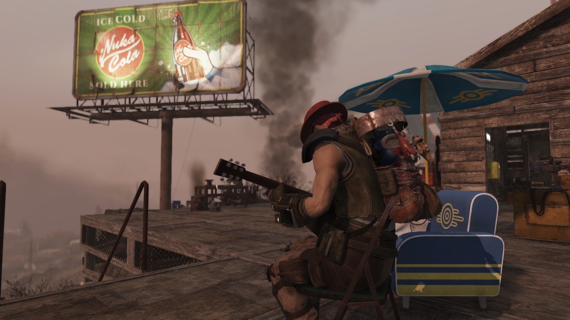 My #GamingPic of the day is of Fallout 76, where I seem to spend all my time these days. Rudolph takes a second away from the post-apocalypse to strum a tune on the guitar.