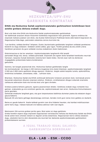 Eusko Jaurlaritzako garbiketako langileen soldatekin parekatzea besterik ez dute eskatzen; lan berdina, soldata berdina, alegia.