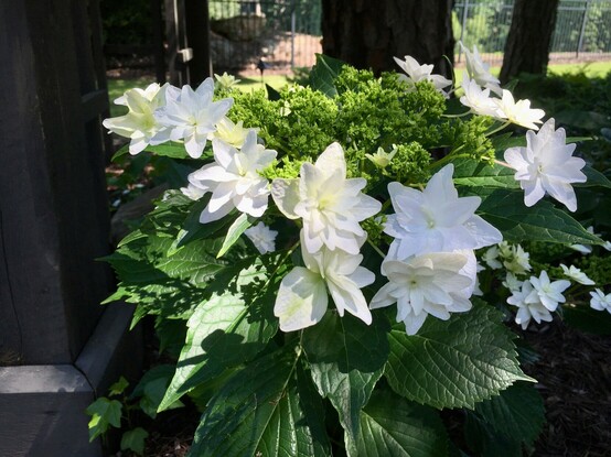 For #WaterfallWednesday, how about some pictures of one of my favorite lace cap hydrangeas: the pure white Hydrangea macrophylla 'Fuji Waterfall'?