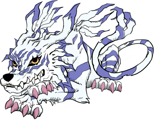 InogaGarurumon is the evolution of Gabumon with the DigiEgg of Sincerity. It alternates very slow movements, contemplating the opponent's actions, with extremely fast attacks.