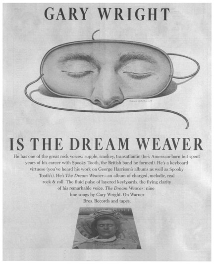 1977 Warner Brothers Records ad for Gary Wright's new album The Dream Weaver.