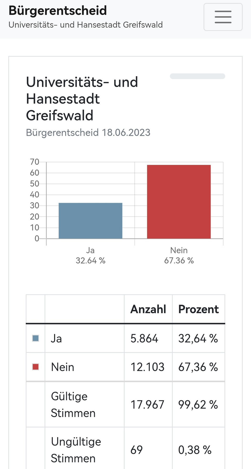 Wow, rassistischer Bürgerentscheid (u.A. unterstützt von #CDU und von Personen aus rechter und Querdenker-Szene initiiert) wird in #Greifswald angenommen…