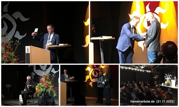 Impressionen der Verleihung des Bundesverdienst vom 21.11.2022 durch Oberbürgermeister Claudio Griese an Bernhard Gelderblom.