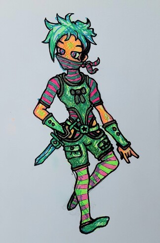 #illustration #illustrators #art #artists #gelpen #glitter #PinkRawk #punk #queer #punx #rogue #thief #ninja #colorfulart #fantasy #anarchist