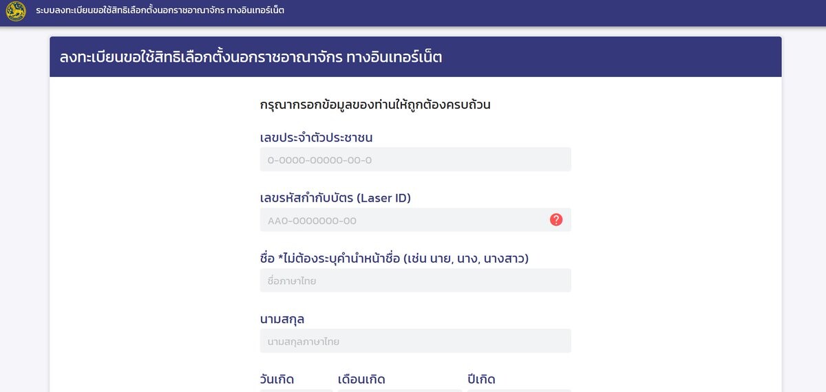 ลงทะเบียนขอใช้สิทธิเลือกตั้ง