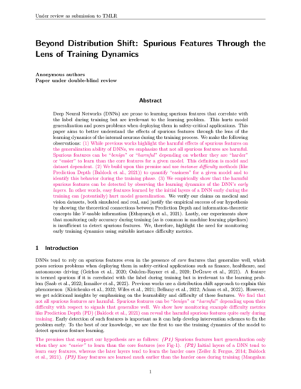 Beyond Distribution Shift: Spurious Features Through the Lens of Training Dynamics