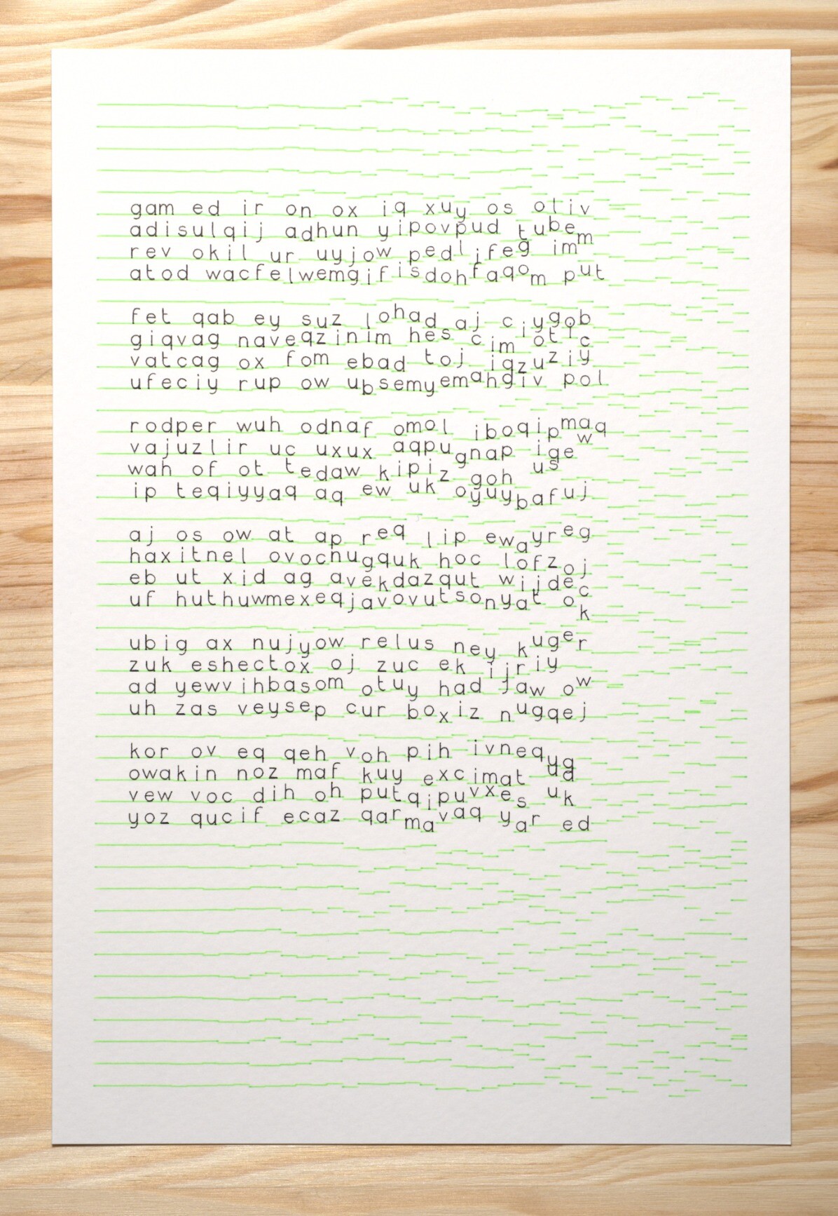 The algorithm is combining random vowels and consonants to build words. It's using my homemade plotting font (wip) that is designed not to lift the pen unnecessarily 🖋️