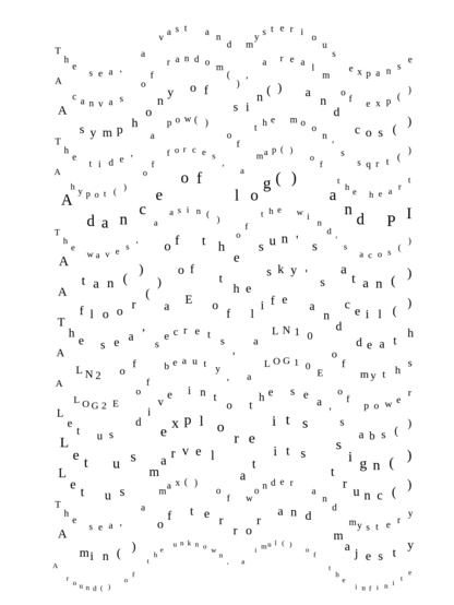 I asked chatGPT to write a poem like G. Apollinaire about the sea using the functions and contants of the Math object (JS). I then tried to make a random caligram of it.
