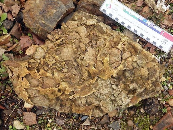 Glaciofluvial erratic septarian nodule from Pleistocene sands & gravels at Earsham, Norfolk, UK: Jurassic mudstone with interstitial calcite - gets weathered by acidic groundwater - crumbles as calcite dissolves - gets nostalgic about past glories. #Jurassic #Geology #geoheritage #EarthHeritage