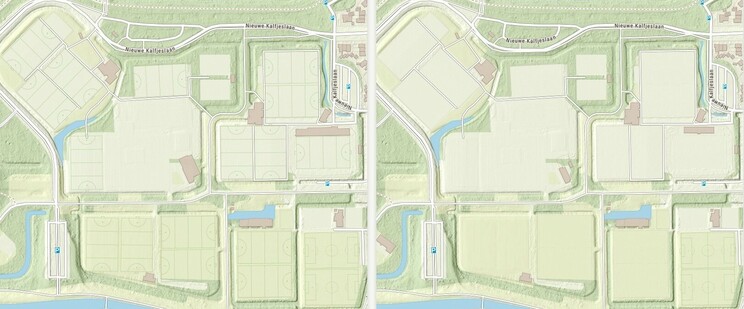 map5topo, new topomap Netherlands: introducing field-hockey pitches. SVG pitch-drawings scaled with Mapnik. New (left) vs old (right). Read more in our Newsletters: https://us10.campaign-archive.com/home/?u=dc76804d91aeb81849bd5071c&id=53b2ade233… (Dutch)