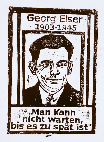 Heute vor 78 Jahren wurde Georg Elser von den Nazis hingerichtet, weil er 1939 ein Attentat auf Hitler verübt hatte. #GeorgElser #linolprint #selfmade