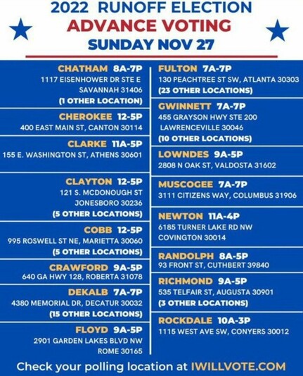 #GeorgiaRunoffs Sunday voting locations...Vote today if you can