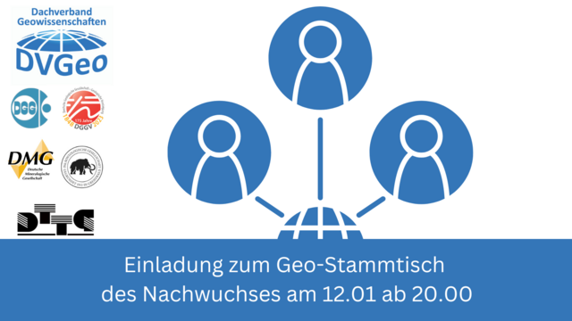 In der AG GeoNachwuchs arbeiten Vertreter:innen des Geonachwuchses der Trägergesellschaften des Dachverbandes zusammen. Um die Vernetzung zu stärken, laden sie am 12. Januar das erste Mal zu einem gemeinsamen Stammtisch ein. Teilnahmelink https://www.dvgeo.org/kommunikation/detail?tx_news_pi1%5Baction%5D=detail&tx_news_pi1%5Bcontroller%5D=News&tx_news_pi1%5Bnews%5D=177&cHash=859fbe72447cc80142893b50eeb3acc9