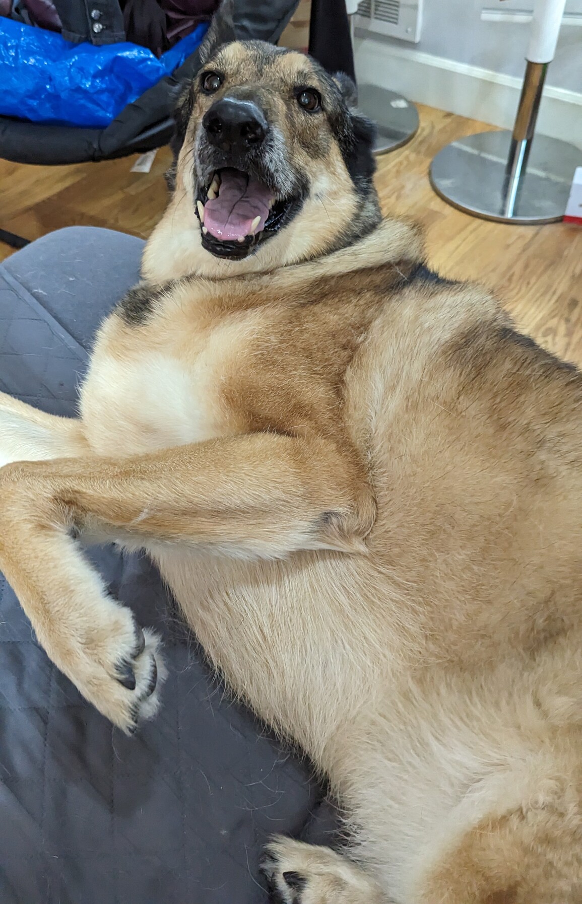 Chewie is being a big ham today, even thanked me for belly rubs (which he almost never wants) 💕 #dogsofmastodon #germanshepherd #adoptdontshop