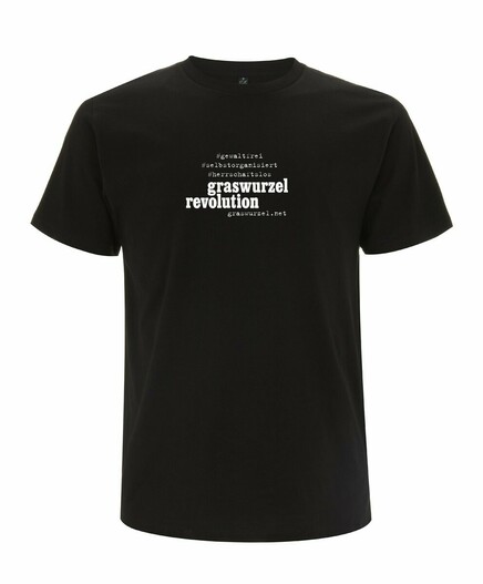 T-shirt Motiv „Hashtag“ – #gewaltfrei #selbstorganisiert #herrschaftslos, Farbe: Schwarz