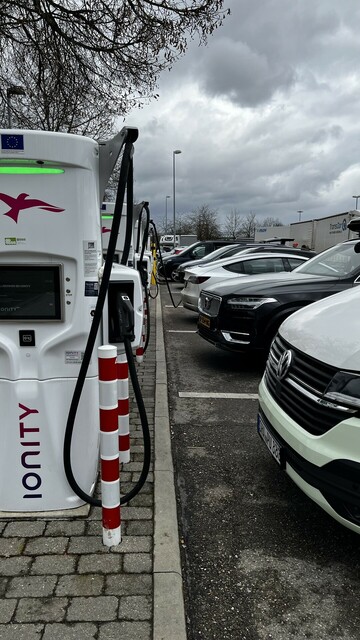 Rasthof #Giengen an der A7. Hier werden regelmäßig die #Ladesäulen zugeparkt. Spricht man die Fahrer der Fahrzeuge an, reagieren diese ungehalten. Vermutlich wissen sie schon, dass das nicht die feine Art ist, aber im Grunde ist es ihnen egal. #IONITY verliert hier Umsatz, und E-Auto-Fahrer können nicht laden.