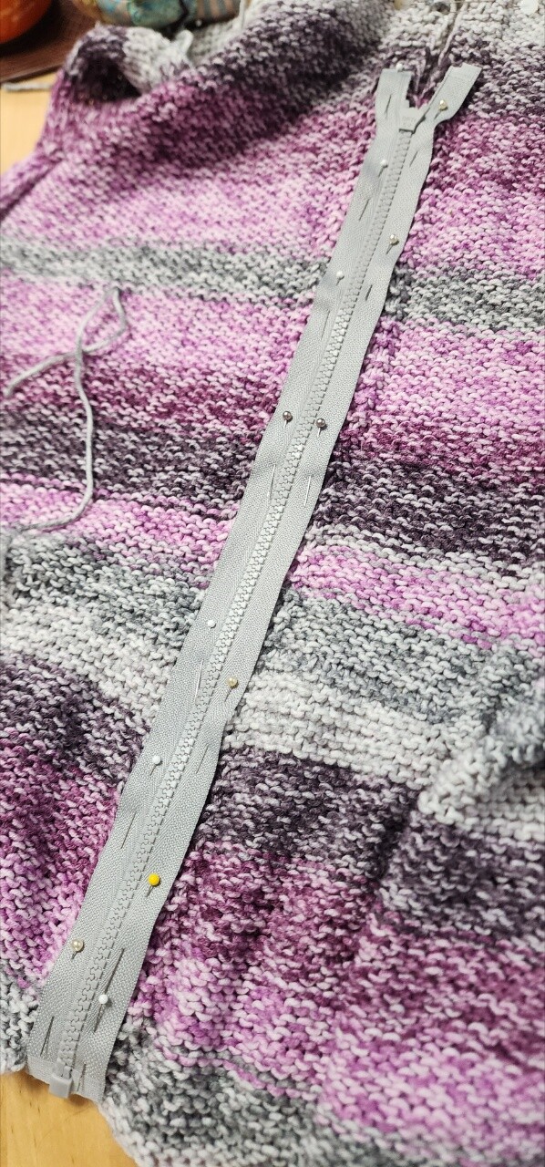Why is it always such a hassle to pin down a zipper on knitting? Ugh. At least the sewing shouldn't take too long. I need to finish this vest this week so I can mail it to my MIL in Britain.