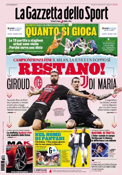 #calciomercato #giroud #milan #DiMaria #juve #bastoni #edicola #primapagina #rassegnastampa #30marzo