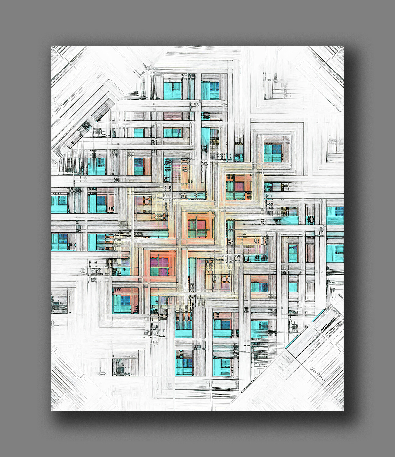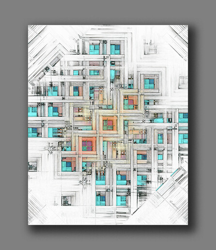This is a piece I titled "Raleigh Springs." That was the name of a popular local mall that, like so many malls, declined and eventually was razed and replaced by a park and other municipal assets. The shape reminded me of blue prints of a large shopping center. Find it here in print & other forms: https://jon-woodhams.pixels.com/featured/raleigh-springs-jon-woodhams.html #AYearForArt #MastoArt #FediGiftShop #GiveArtNotCandy #LoveArt #contemporaryart #abstract #abstractart #ArtistsOnMastodon #ArtForInteriorDesign #artprints #prints #SpringForArt