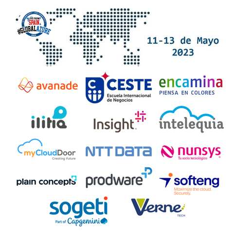 Plantel de patocinadores del #GlobalAzure 2023 completo, con esta 3ª tanda. Se nos unen @myCloudDoor @softeng_es @SogetiSpain . ¡Gracias a todos!