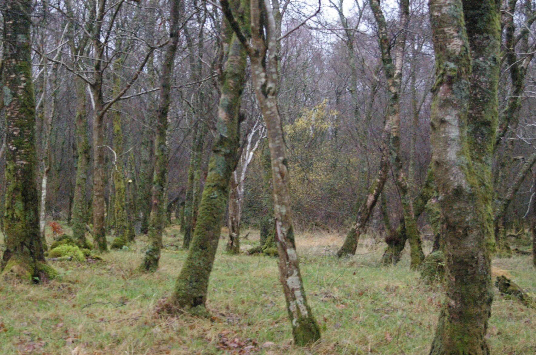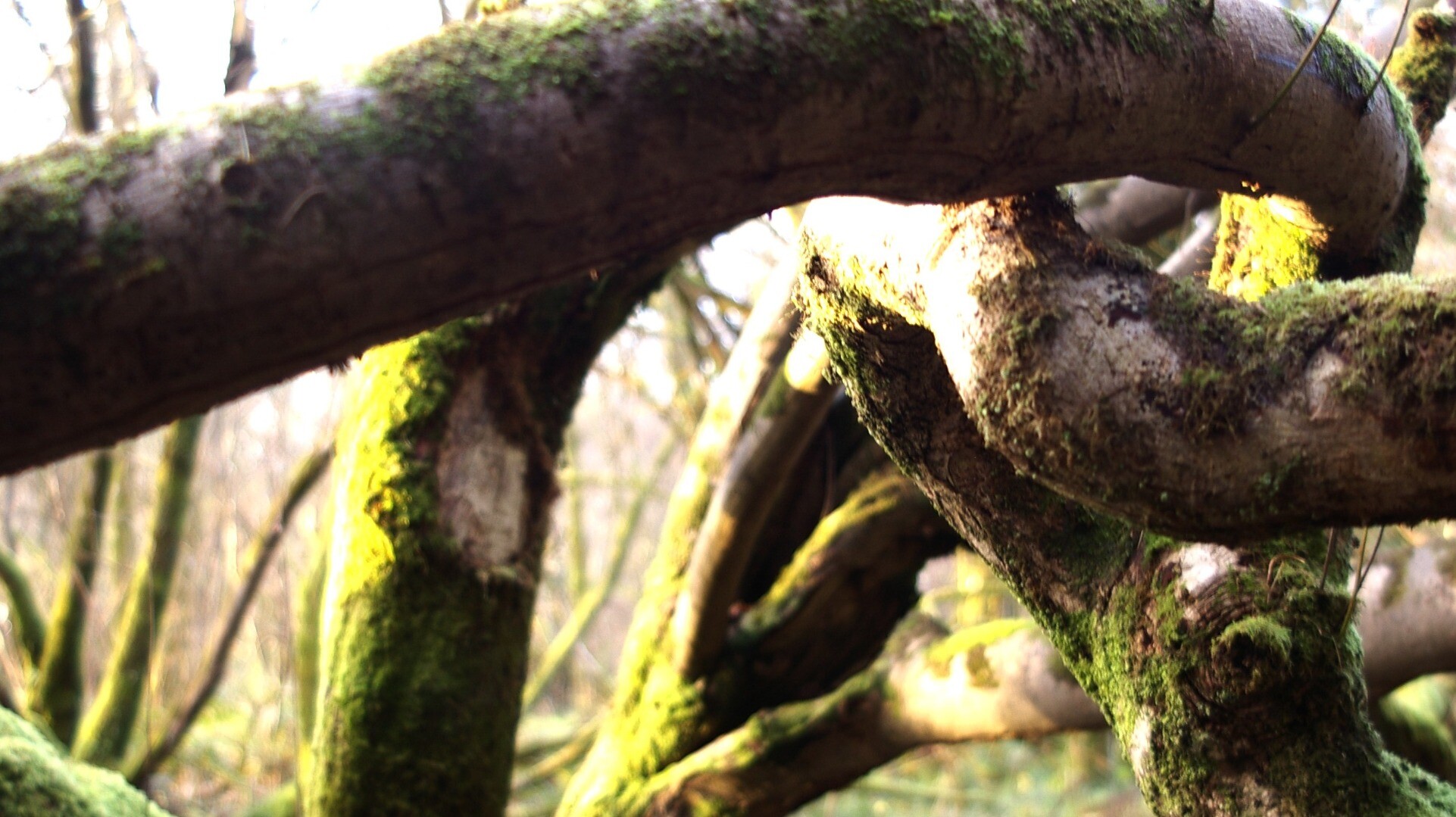 #goatwillow in a tangle with patches of puddle reflecting the sky, November