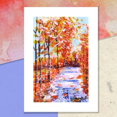 This piece was inspired by the turn of the season, still autumn with beautiful colours but the winter is drawing close. Much like this week, I have had ice in my car! I hope you are all staying warm 🤗 #goauche #painting #MastoArt #ScottishArtist