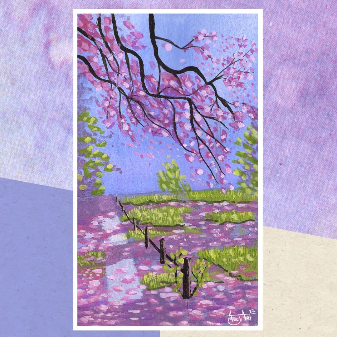 Anyway, thought I would share another #goauche #painting from my #CherryBlossom series. I don't usually use pinks & purples in my art, maybe I went a bit over the top? 😂