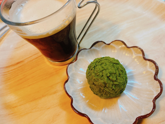小ぶりで雑穀米使用のおはぎ本体×抹茶の苦味がきいてて、コーヒーと合う!