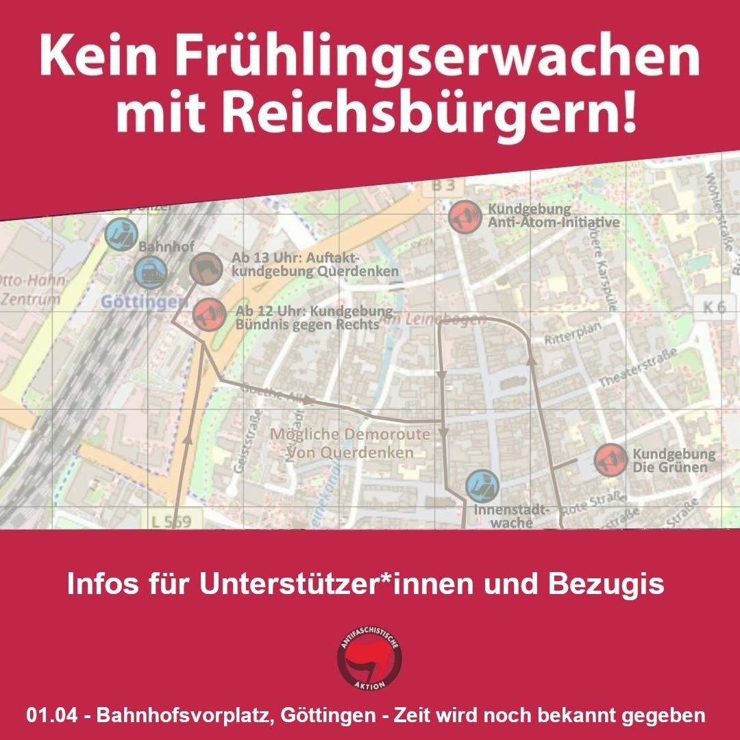 Hallo aus #Göttingen. Heute findet hier eine Demonstration als „Frühlingserwachen“ der verschwörungsideologischen Querdenken-Bewegung statt, die ab 9 Uhr vor dem Bahnhof angemeldet ist und deren Programm ab 13 Uhr starten soll. (1/2) #goe0104