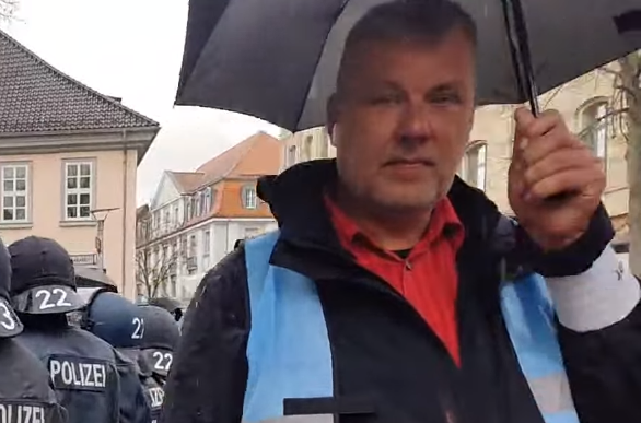 Auch Edgar Schu (ex #DieLinke , Ratsherr der Stadt #Göttingen) nimmt am verschwörungsidiologischen '#Friedenserwachen' Aufzug durch #Göttingen teil #goe0104
