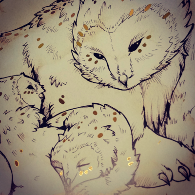 #dungeonsanddragons #owlbear #mindflayer #inktober #coffeeart #fantasyart #MastoArt #traditionalart #goldfoil