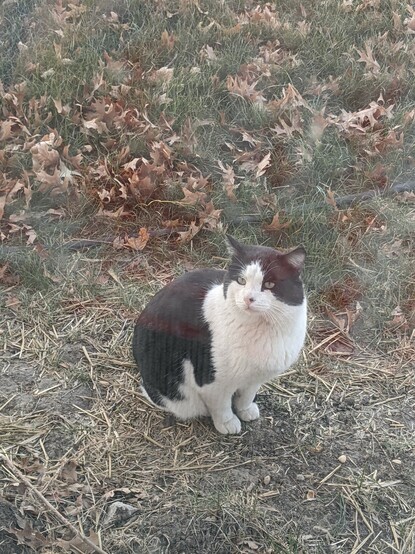 This is Tuxie our friendly neighborhood stray. I've tried getting him into the garage at night but he seems very against that idea as of yet. He does come by daily (food) and unfortunately this morning did so with a puncture wound on his front left leg. I've hydrogen peroxided it lightly and will hope for the best. He's okay, though slightly vocal the two times I've cleaned it today but I think he knows I'm helping.