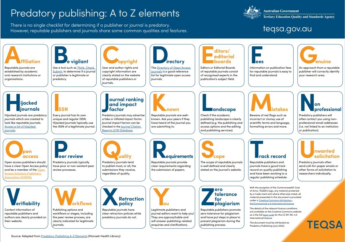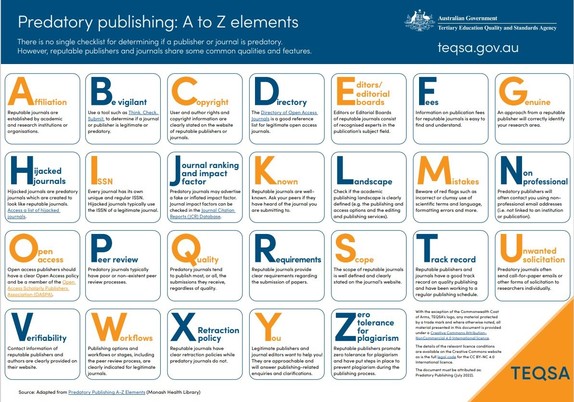 ➡️ https://www.teqsa.gov.au/sites/default/files/predatory-publishing-a-z-elements.pdf?v=1656656736
