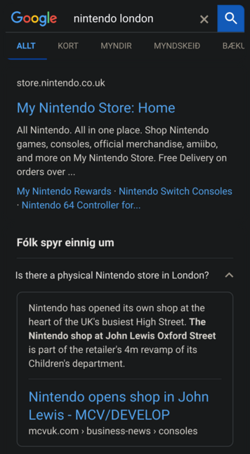 I did a #Google search for *nintendo store london*.