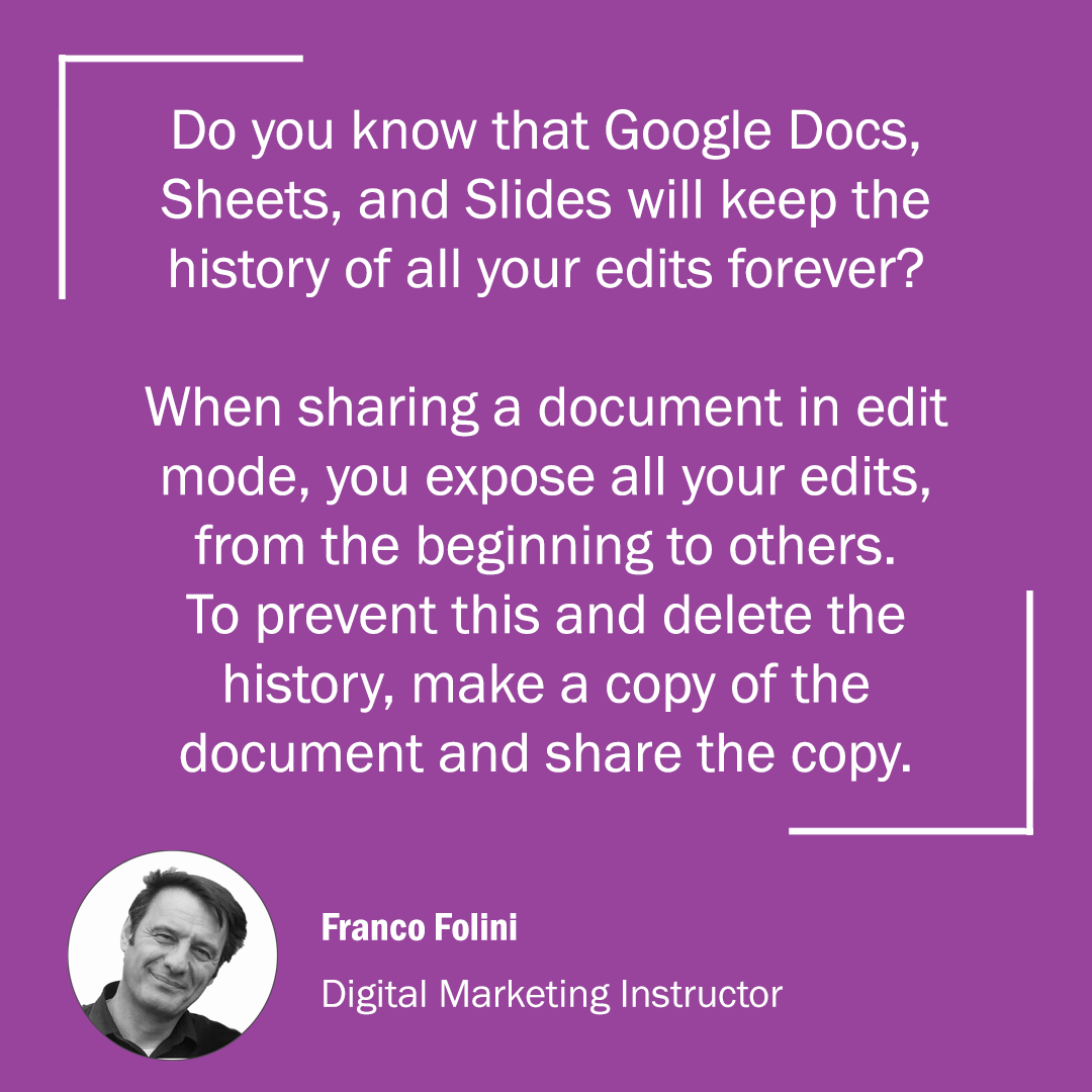 Do you know that Google Docs, Sheets, and Slides will keep the history of all your edits forever?