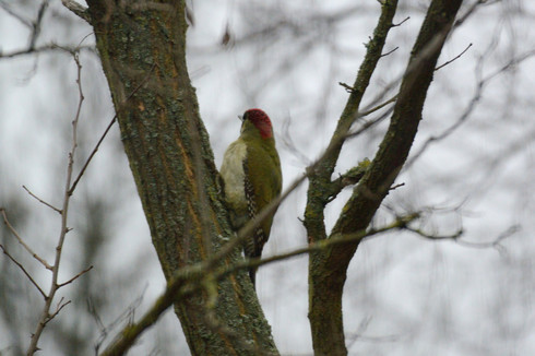 Heute kam der Winter zurück und es gab Schneeregen. Auf der #Blühwiese wieder ein #Grünspecht auf Nahrungssuche.