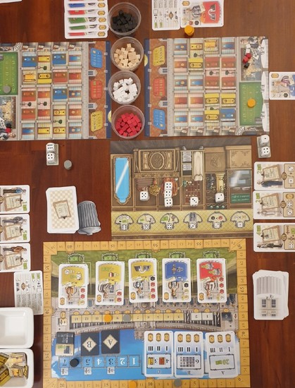 #Brettspiele #boardgames Heute gab es bei uns die Einstiegs- und 2.-Partie von #GrandAustriaHotel. Das erste Spiel war noch ein wenig frickelig. Da wurde mal vergessen Gäste zu nehmen, oder die Features des Personals zu nutzen, etc. Bei der zweiten Runde hatten wir das besser im Griff und das Spiel flutschte deutlich besser. Insgesamt ein sehr solides Spiel für Eurogamer mit viel Varianz und Charme. Bin mir aber nicht sicher, ob ich das zu 4. spielen wollte, da könnte die Downtime hoch werden.