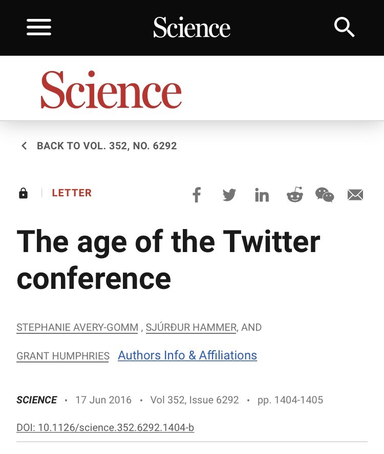 Eitt hugskot @Martinnsimonsen @olavur eg havi verið við at skipa fyri fleiri world seabird twitter conferences. Setrið ella deildir á setrinum, burdi/kundi skipa fyri mastodon conferansum um eitthvørt evni ELLA at vísindavøkan bleiv partvíst online! Sí td hesa greinina sum vit fingu við í Science einaferð: https://www.science.org/doi/10.1126/science.352.6292.1404-b #vísind #gransking #vísindamiðling