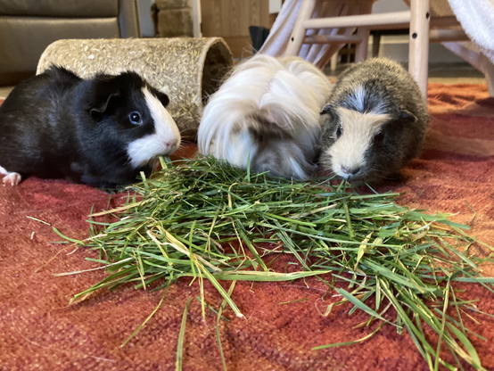 My personal delivery of #grass2023! It's still too chilly to go out, which has made this years #grassVintage especially lush. As not to miss out, hoom brought the grass in for us. #MsDaisy #guineapig #guineapigs #SNAC