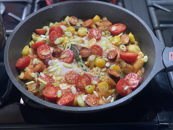 Eggs, potatoes #NigelSlater #GreenfeastSpringSummer #homegrown potatoes, tomatoes & chillies #mymenuplan