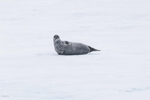 Who's watching who? A harp seal returns my gaze not realizing that it was a new species for me (but I doubt I was the first human for it). #Greenland