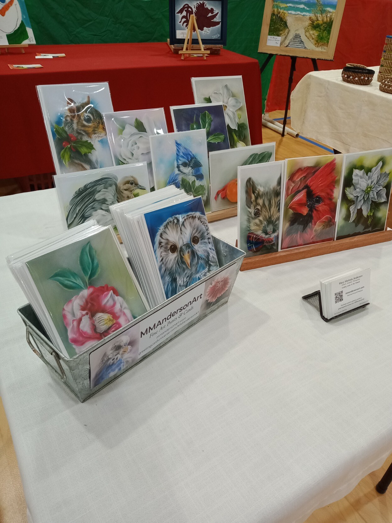 I displayed some blank greeting cards at our city's Holiday Goodness show as a member of the local art guild. I had a few sales so it was not a total disappointment but I noticed that people didn't seem to be spending a lot of money on larger items. I hope the economy improves soon for the sake of everyone who depends on sales of their creative work. My greeting cards are available online at https://www.greetingcarduniverse.com/MMAndersonArt. #GreetingCardDesigner #ArtGreetingCards