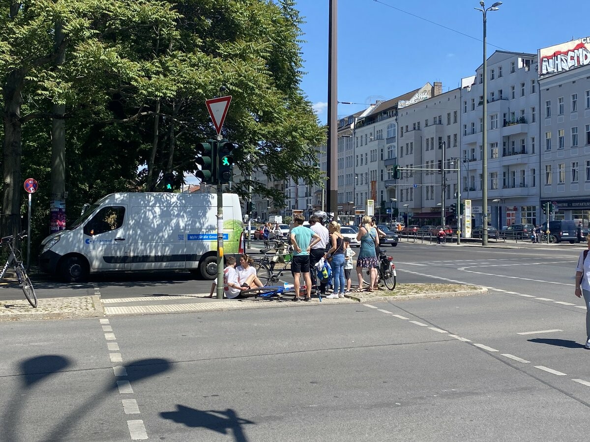 wieder an der Ecke wo gerade erst n Radfahrer starb, erneut Radfahrer angefahren. Unglaublich! Ätzend. Ich wollt bei grün ü. Straße gehen - Autofahrer hupt. Ich blieb mitten auf der Straße stehen bis rot wurde. Protest! #greifswalderstrasse #adfc #autofahrertöten. @ADFC_Berlin