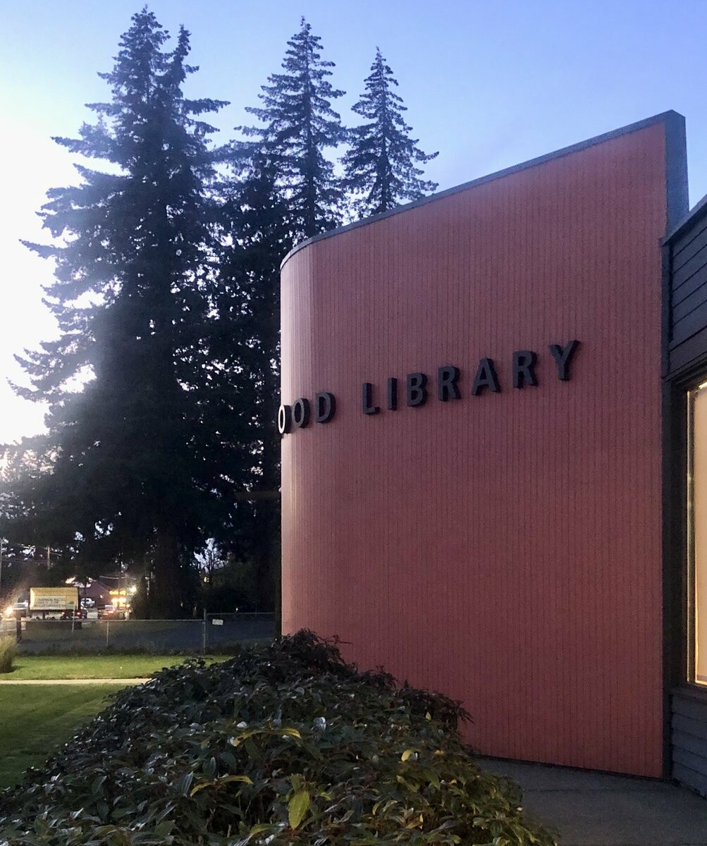 1st time in at new nearest public library (@MultCoLib #RockwoodLibrary, #Gresham)—important ritual moment for me in any new place. Loved seeing cool resources & programming; & elegant 1963 building looking fresh from 1999 @HackerArch renovation https://multcolib.org/rockwood-library-history c/@dadjaye