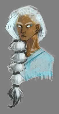 Went through a bunch of color iterations, but we’re back to this medium skin tone + white hair look. Messing with skin markings and a bit of makeup though too. Anadh, my fallen angel/mute aasimar bard depending on universe.