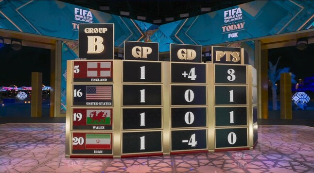Likewise, the winner of USA/IRN goes through and the loser is out. This also eliminates WAL, unless WAL wins by 4 or more, in which case ENG goes out on goal difference.