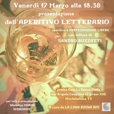 Vi aspetto venerdì prossimo, 17 marzo 2023, alle ore 18:30 presso Casa La Buona Stella per la presentazione di: APERITIVO LETTERARIO!