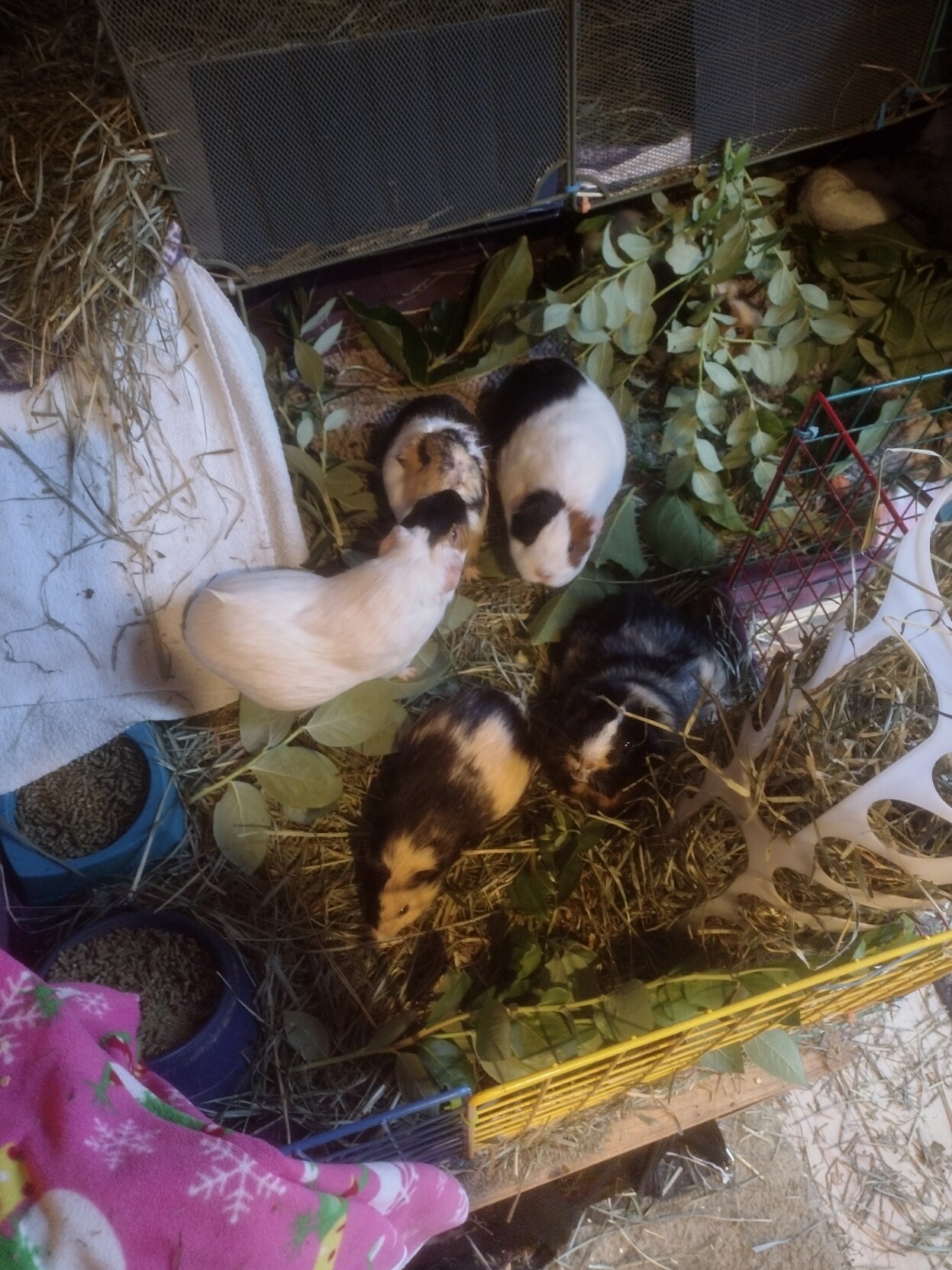Piggies got to try blueberry leaves from the garden today! #GuineaPigs #guineapigsofmastadon