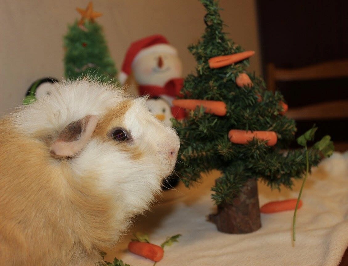 Day Four of #ArtAdventCalendar - from the archives, my Guinea Pig Charlie about to gleefully go after the baby carrot “decorations” in the tree #Pets #GuineaPigsOfMastadon #GuineaPig #Photography #AltText